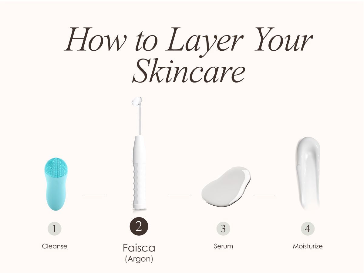 High frequency wands can be used on a freshly cleansed face or over a hydrating gel or serum such as hyaluronic acid. If you want more help gliding the device over the skin, a serum is a good option. Once you have finished the treatment, complete the remaining steps in your skincare routine. Waiting to apply skincare until after the treatment will help boost absorption leaving you glowy and fresh faced
