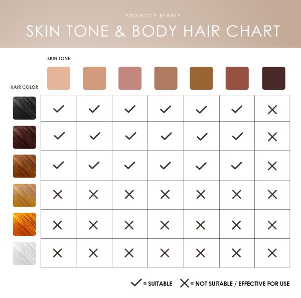 *consult our skin tone and body hair chart before purchasing. Users should always conduct a patch test and start with intensity level 1 in all areas, particularly if you are If you're unclear about your particular skin or hair type